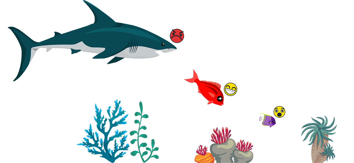 To complete this challenge you need to eat a number of fish. To eat the other fish you need to be larger than them, use the environment for your advantage, or use your fish special ability!
